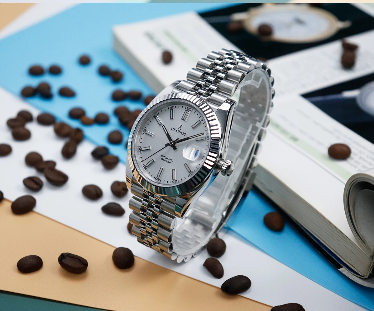 Date Luxury Men Dress Watch Stainless Steel 5 Links Bracelet Copper-Nickel Platinum PVD Bezel 100m Water Resistant